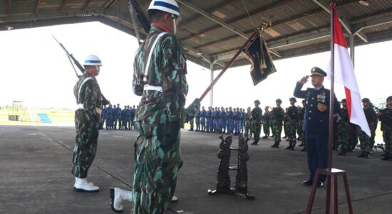 Medan – Komandan Lanud Soewondo, Marsma TNI Tio Hutapea, S.Sos., M.A.P., pimpin acara pelepasan Satuan Tugas RI–PNG di Shelter Lanud Soewondo, Kamis