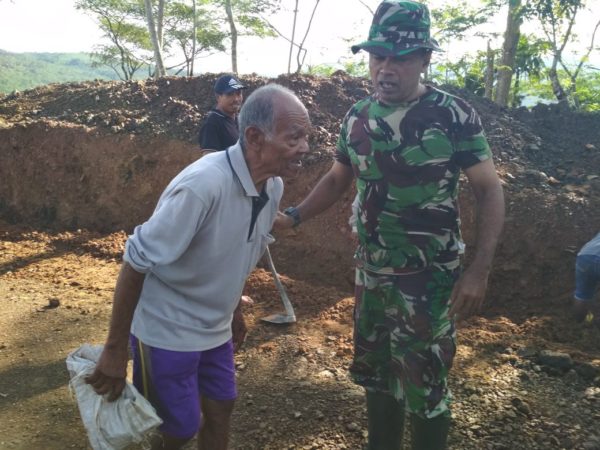 ”Usia saya sudah tua, namun demikian saya perlu mengucap syukur yang saya wujudkan dalam ikut bergotong royong di TMMD ini, apalagi membangun jalan” tandasnya.