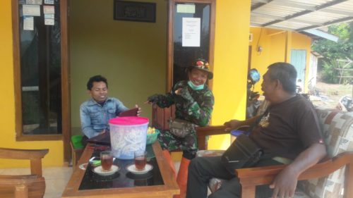Beberapa personel Satgas TMMD yang aktif menggiatkan Komsos adalah Danramil 01 Subah Kodim 0736 Batang, Kapten Inf. Sugito (memakai masker) dan Serka Hermansyah (kaos ungu memakai jeans). Upaya mereka terus bersilaturahmi guna mempererat hubungan emosional dua arah, tak lain sebagai penggalangan warga agar keterlibatannya dalam membantu pekerjaan fisik maksimal. Dengan menggandeng perangkat desa Suprayitno (50) Kepala Urusan Keuangan Desa Durenombo sekaligus “Ki Dalang” tentunya akan lebih memudahkan penyampaian dan ajakan. Minggu (21/10/18).