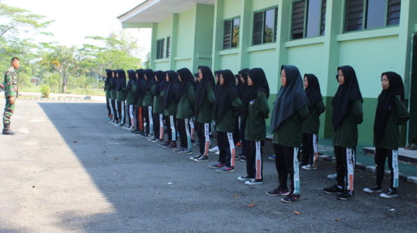 Sebanyak 80 orang siswa mengikuti pelatihan yang dipimpin oleh Serka Maryono. Adapun materi yang diberikan berupa materi dasar PBB, seperti sikap sempurna, sikap istirahat, hadap kanan dan kiri, jalan ditempat serta penghormatan.