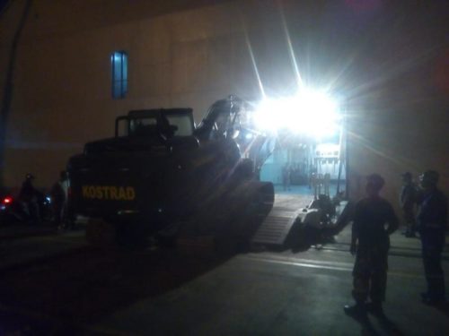 “Berbagai alat berat Zeni TNI yang diangkut terdiri dari 6 unit Eskavator, 18 Dump Truck, 5 unit NPS, 2 unit Truk Tangki Air, 3 unit Mobil Patroli, 1 unit Mobil Panther dan 3 unit Motor Trail,” ujar Mayjen TNI M. Sabrar Fadhilah.