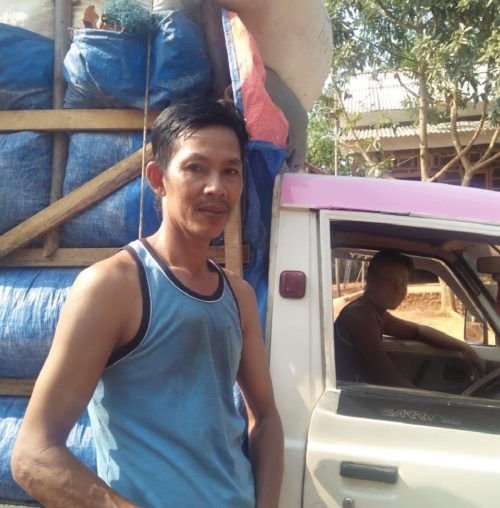Batang – Mulyono (42) penebas dan penjual daun cengkeh asal Dusun Durensari Rt. 01 Rw. 03 Desa Durenombo Kecamatan Subah, Nampak membawa hasil tebasan daun dari warga setempat untuk dipasarkan ke tempat penyulingan Desa Pretek Kecamatan Pecalungan. Rabu (24/10/18).