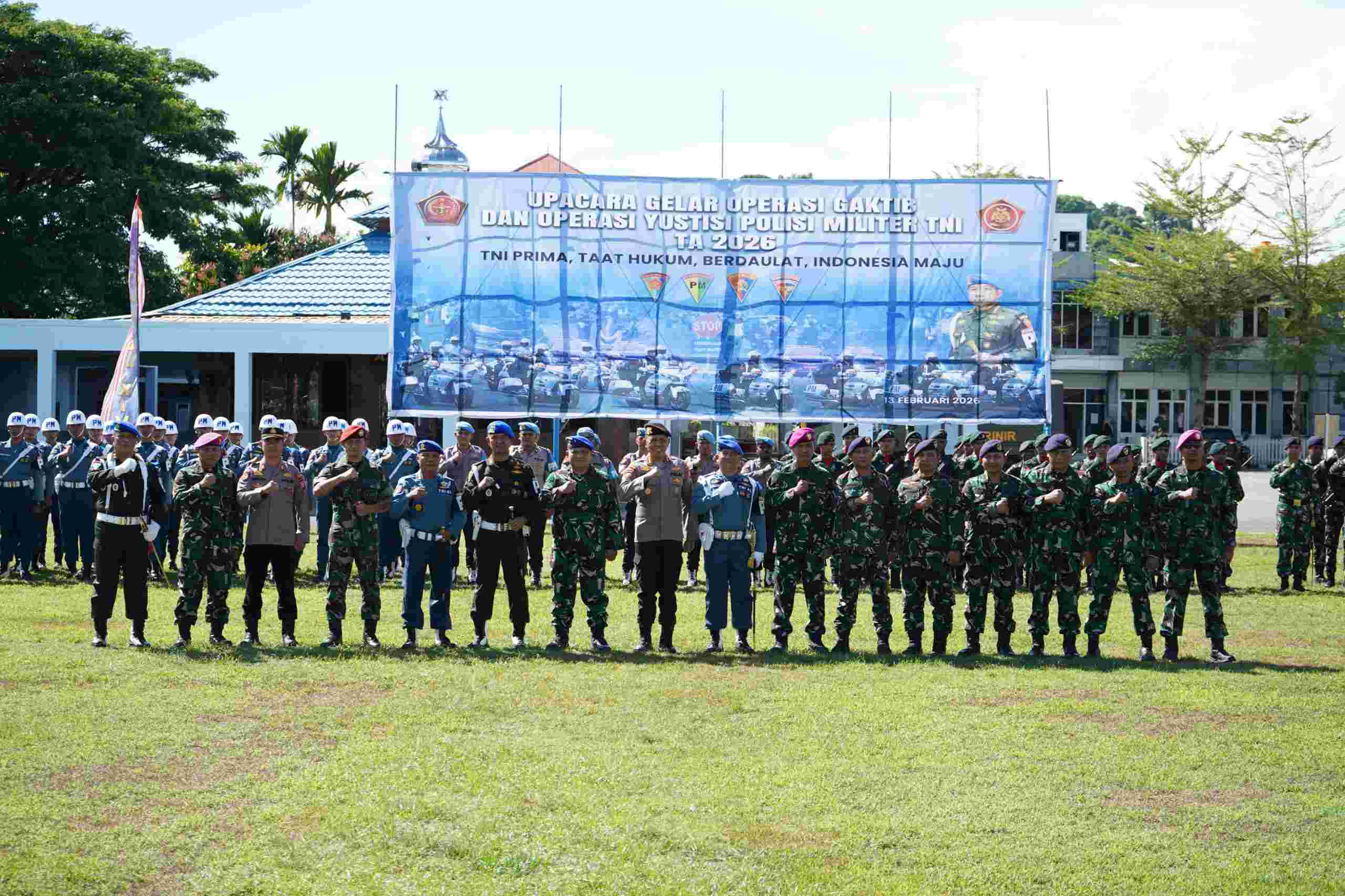 Adapun upacara Gelar Operasi Gaktib dan Operasi Yustisi Polisi Militer TA 2026 yang mengangkat tema “TNI Prima, Taat Hukum, Berdaulat, Indonesia Maju”, diikuti unsur Polisi Militer TNI AD, TNI AL, dan TNI AU, serta Propam Polresta Sorong Kota.