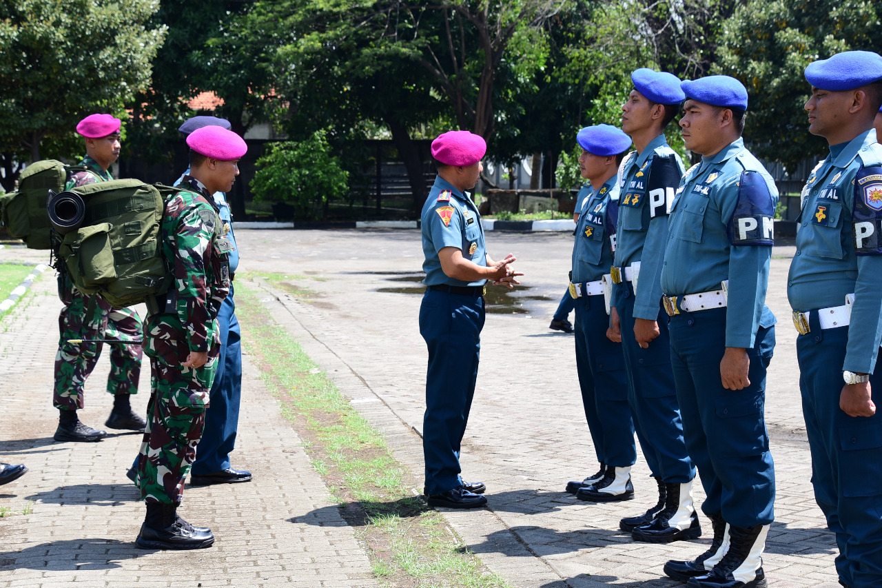 Surabaya – Wakil Komandan Pabgkalan Utama TNI AL V (Wadan Lantamal V) Kolonel Marinir Jasiman Purba, S.E. mewakili Danlantamal V Laksamana Pertama TNI Tedjo Sukmono, S. H., CHRMP memimpin jalannya Apel Siaga Penanggulangan Bencana (Gulben) Lantamal V di Lapangan Yos Sudarso, Mako Lantamal V, Surabaya, Senin (6/1).