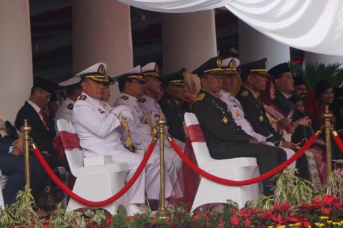 Surabaya – Wakil Komandan Pasmar 2 Kolonel Marinir Ludi Prastyono menghadiri acara penurunan bendera sang merah putih di gedung grahadi, Surabaya, Jumat (17/08/2018).