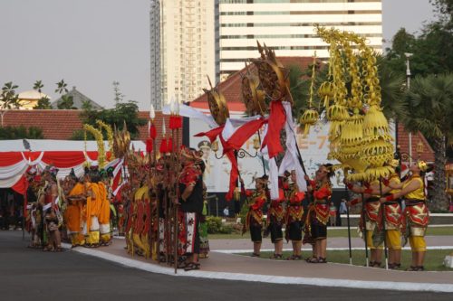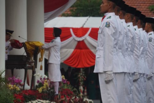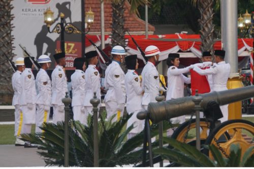 Upacara penurunan bendera sang merah putih dalam rangka memperingati hari Kemerdekaan Republik Indonesia yang ke 73, dilaksanakan di halaman depan gedung Grahadi tersebut berjalan dengan lancar. Sebelum acara penurunan bendera di mulai, acara diawali dengan penampilan teatrikal Sumpah Palapa, tarian yang mengisahkan sejarah kerajaan Majapahit dalam mempersatukan Nusantara, selain acara tersebut juga dilaksanakan pemberian hadiah dan penghargaan, kepada atlit-atlit Jawa Timur oleh Gubernur Jawa Timur H. Soekarwo, atas prestasi yang di capai.
