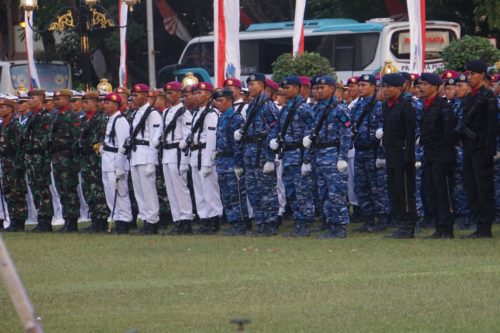 Pasukan upacara masing-masing satu peleton terdiri dari, Korsik Satpol PP, Korps Wanita TNI dan Polwan, Taruna AAL, TNI AD, Marinir TNI AL, TNI AU, Polri, Korpri, Mahasiswa, Ormas Kepemudaan, dan Pelajar serta Pramuka.