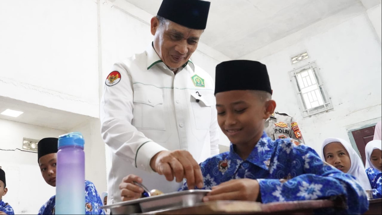 Ogan Komering Ilir – Aroma gulai ayam dan orek tempe tercium dari ruang kelas Pondok Pesantren Mambaul Ulum. Di antara deretan meja kayu, Wakil Menteri Agama Romo Muhammad Syafi’i tampak berbaur dengan para santri, meninjau langsung pelaksanaan Program Makan Bergizi Gratis (MBG) sekaligus mencicipi hidangan mereka, Rabu (8/10/2025).