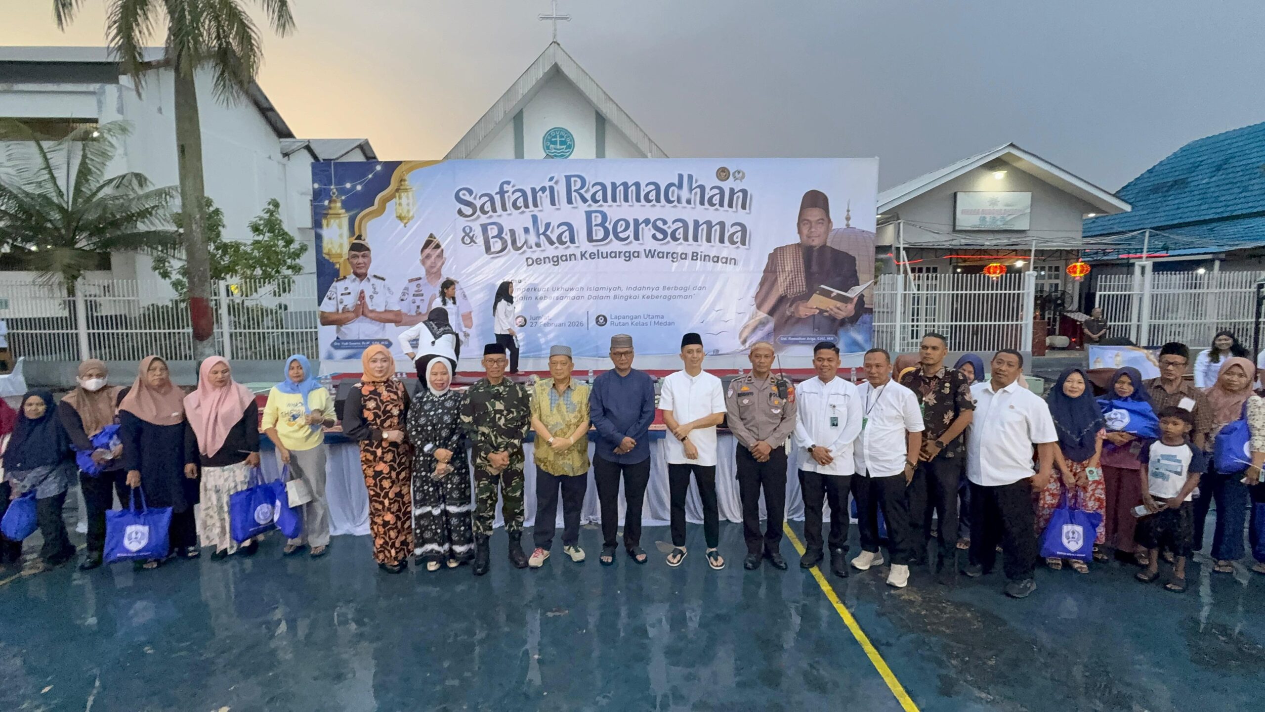 Medan – Safari Ramadhan di Rumah Tahanan Negara Kelas I Medan berlangsung penuh khidmat dan kebersamaan. Kegiatan yang dirangkaikan dengan buka puasa bersama ini menghadirkan momen istimewa bagi 372 warga binaan yang berkesempatan berbuka puasa bersama keluarga mereka. Sementara itu, 1.171 warga binaan lainnya mengikuti buka puasa bersama di lingkungan Rutan bersama seluruh petugas dalam suasana religius dan penuh kekeluargaan. Jumat (27/02/2026).