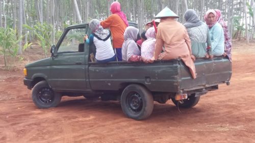 Hal tersebut dilakukan karena jarak antara dukuh Gepret ke lokasi tempat Upacara lumayan jauh, Sehingga warga harus diangkut menggunakan mobil pic up terbuka milik TNI yang di kemudikan oleh Kopda Darnoto, Minggu (14/10/18).