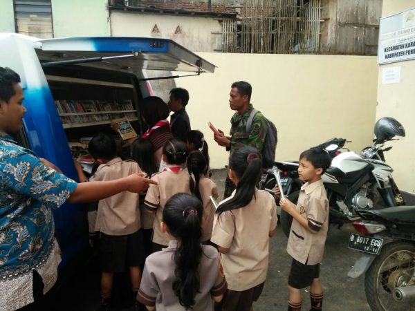 PB|PURBALINGGA – Dalam era digital sekarang ini minat baca masyarakat perlahan tergantikan oleh kecanggihan teknologi dan fasilitas yang disediakannya. Efek dari era digital ini melingkupi hampir dari segala aspek baik umur, status, hingga jenis kelamin. Maka dari itu perpustakaan sebagai lembaga yang bersangkutan langsung terhadap fenomena ini mengambil langkah-langkah yang mendukung agar program minat baca masyarakat dapat kembali digalakan, salah satunya yaitu dengan program perpustakaan keliling.
