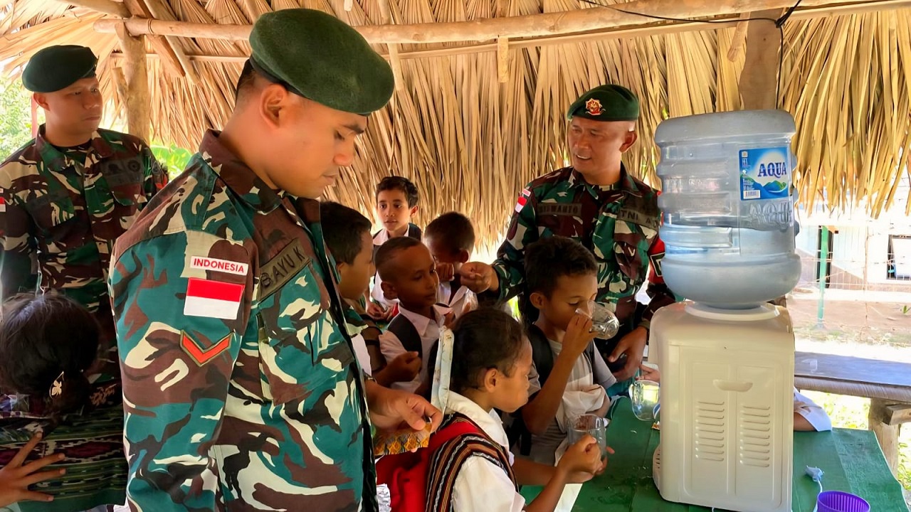 Belu – Bentuk kepedulian terhadap masyarakat di wilayah perbatasan kembali ditunjukkan oleh Satgas Pamtas RI–RDTL Sektor Timur Yonarmed 12 Kostrad. Melalui Pos Asulait, prajurit Satgas menyediakan air minum gratis dan pemberian vitamin bagi masyarakat serta anak-anak sekolah yang melintas di depan pos. Langkah sederhana ini menjadi wujud perhatian terhadap warga yang kerap menempuh perjalanan jauh di bawah terik matahari menuju sekolah atau tempat beraktivitas.