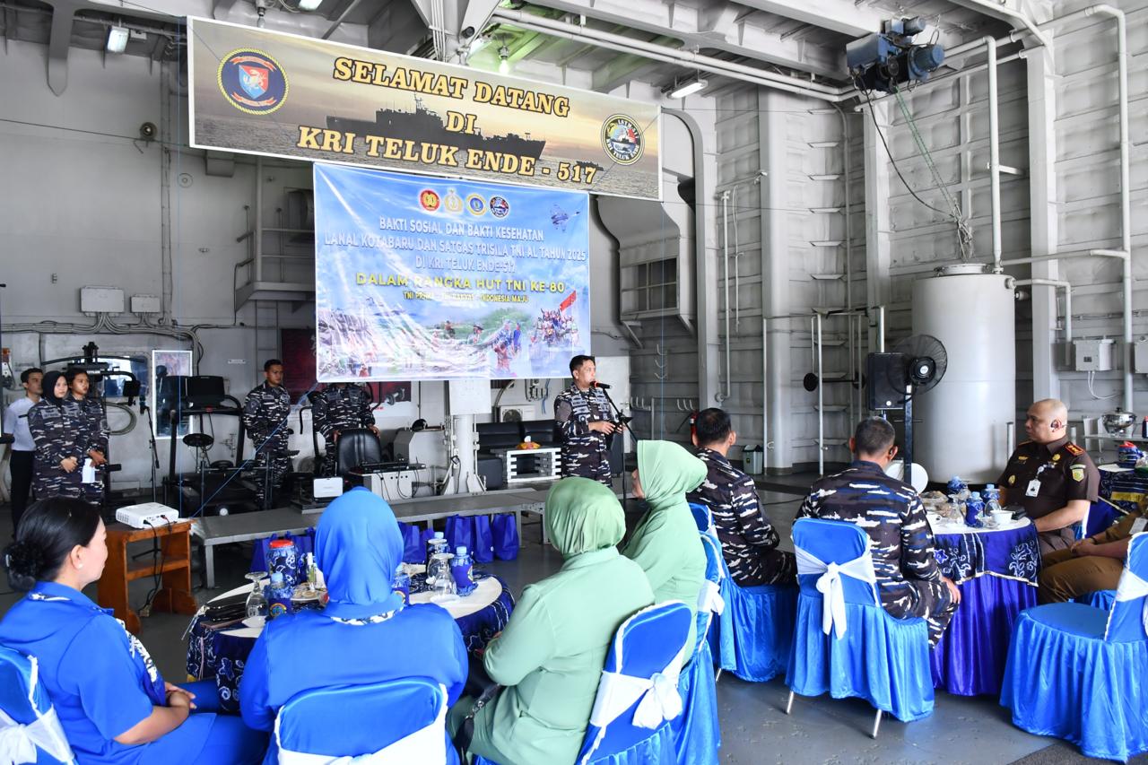 Kegiatan kali ini merupakan kegiatan kemanusiaan yang diselenggarakan oleh TNI AL dalam menyambut HUT ke-80 TNI yang akan diperingati pada tanggal 5 Oktober mendatang. Pelaksanaan Bakti Sosial dilaksanakan dengan membagikan 150 paket sembako dan Bakti Kesehatan Donor Darah 30 orang. Sedangkan kegiatan Open Ship dihadiri oleh siswa-siswi SMKN 2 Kotabaru, SMAN 2 Kotabaru, SMK pelayaran Al- Bukhori, SMP Al- Bukhori, dan masyarakat setempat dengan memperkenalkan profil TNI AL dan KRI Teluk Ende 517.