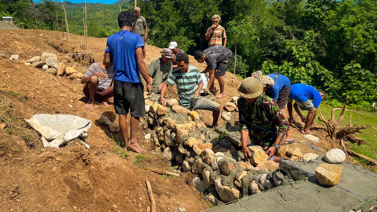 Kegiatan ini merupakan bagian dari program teritorial Satgas Pamtas RI-RDTL Sektor Barat Yonarhanud 2 Kostrad dalam mendukung percepatan infrastruktur pendidikan di wilayah perbatasan. Pengerjaan sudah dilaksanakan beberapa hari, kini sudah masuk tahap pengecoran pondasi. dimulai dengan pemasangan tali, mengaduk semen, penyusunan batu, pemasangan kawat, hingga pemecahan batu menjadi kerikil.