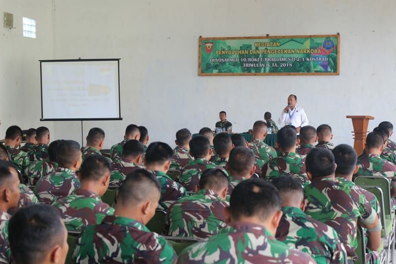 Bogor – Prajurit Yonarmed 10 Roket Kostrad menerima penyuluhan Pencegahan Pemberantasan Penyalahgunaan dan Peredaran Gelap Narkoba (P4GN) dari BNN Kabupaten Bogor bertempat di Yonarmed 10 Roket/ Kostrad, Selasa (18/12/2018).