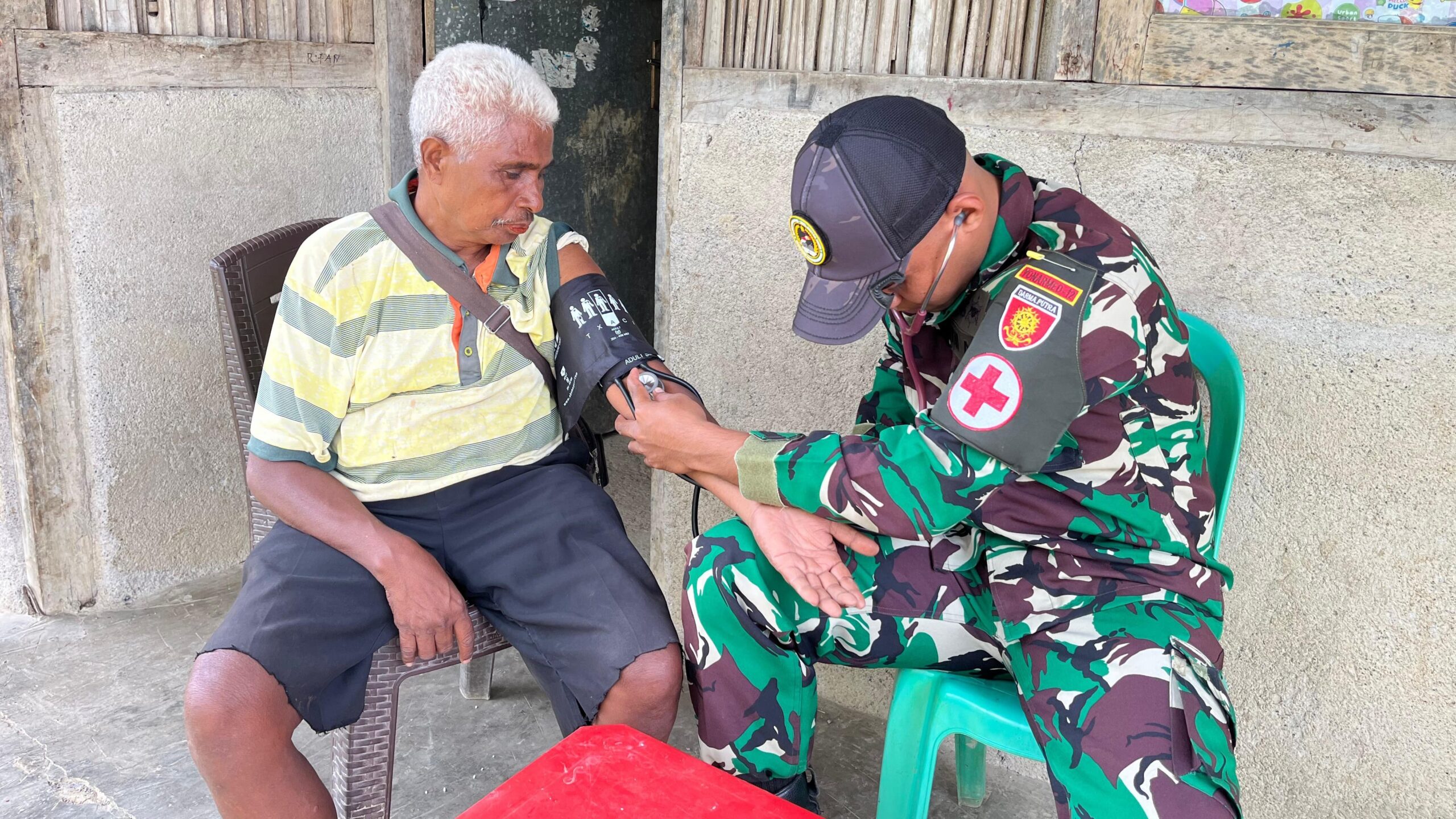 Belu – Wujud kepedulian terhadap kesehatan masyarakat perbatasan kembali ditunjukkan oleh Satgas Pamtas RI–RDTL Sektor Timur Yonarmed 12 Kostrad melalui Pos Nananoe dengan melaksanakan pelayanan kesehatan keliling di Desa Nanaenoe, Kecamatan Nanaet Dua Besi, Kabupaten Belu, NTT, Senin (30/03/2026).