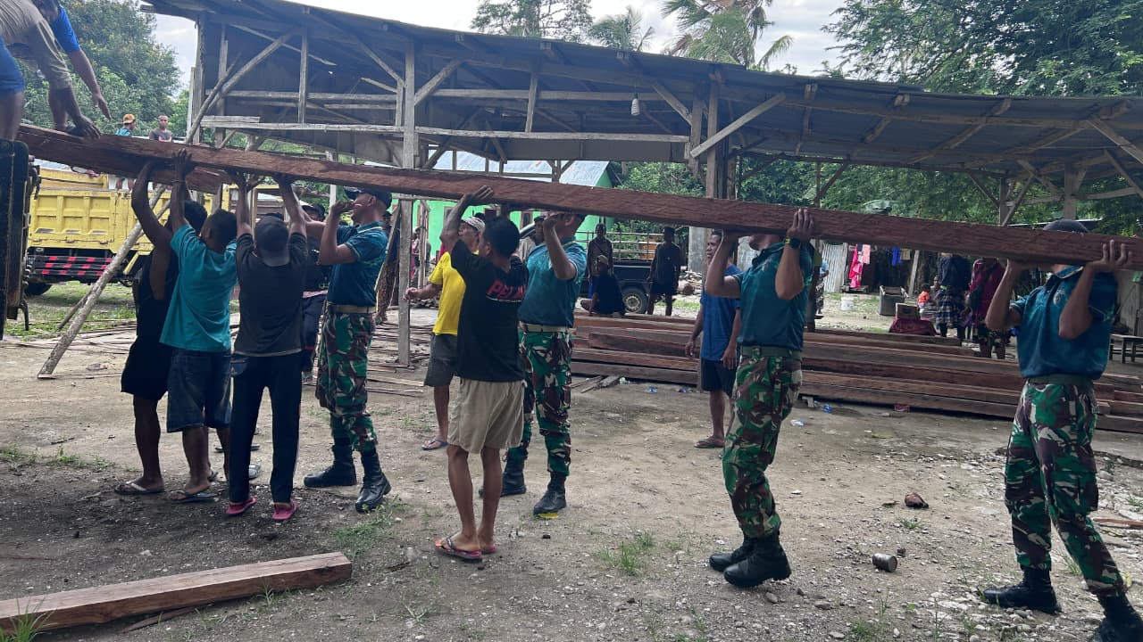 Dalam kegiatan tersebut, personel Pos Haslot bersama warga bahu-membahu memindahkan berbagai material bangunan seperti kayu, batu, dan bahan lainnya yang akan digunakan untuk pembangunan rumah adat. Semangat gotong royong yang terjalin antara prajurit dan masyarakat menjadi bukti nyata kedekatan TNI dengan warga di wilayah perbatasan.