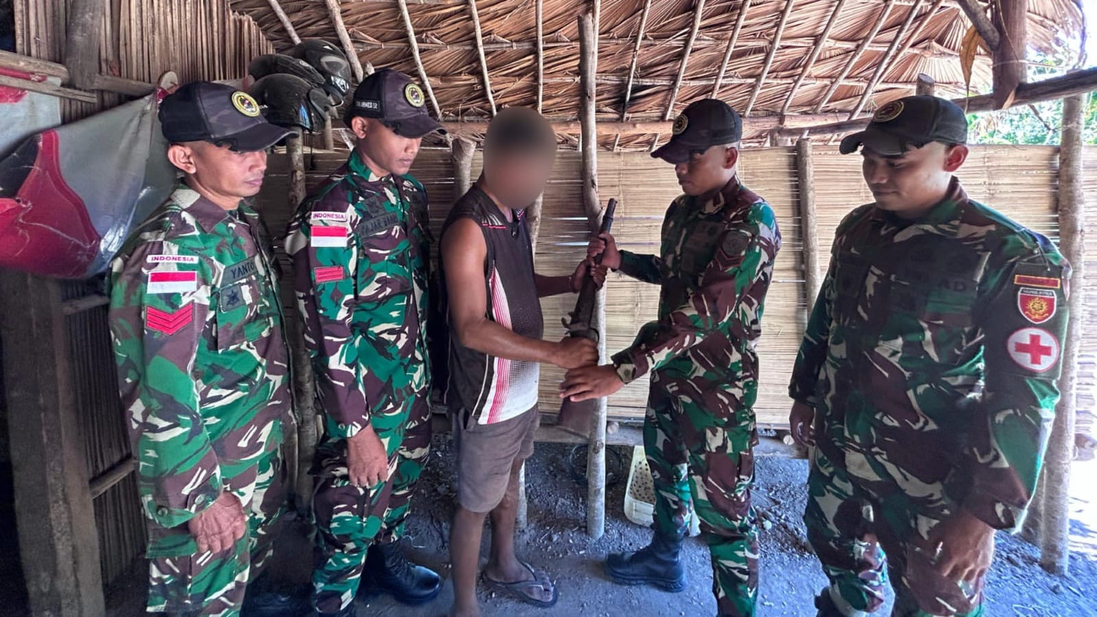 Setelah kegiatan bakti sosial dan pemasangan lampu tenaga surya di kediamannya, YH dengan kesadaran sendiri menyerahkan senjata api peninggalan masa konflik Timor Timur yang selama ini disimpan di rumahnya. Ia mengaku merasa khawatir dan tidak tenang menyimpan senjata tersebut, sehingga memilih menyerahkannya kepada pihak yang berwenang. Senjata tersebut kemudian diamankan oleh personel Pos Haslot dan dilaporkan secara berjenjang untuk selanjutnya disimpan di gudang senjata.