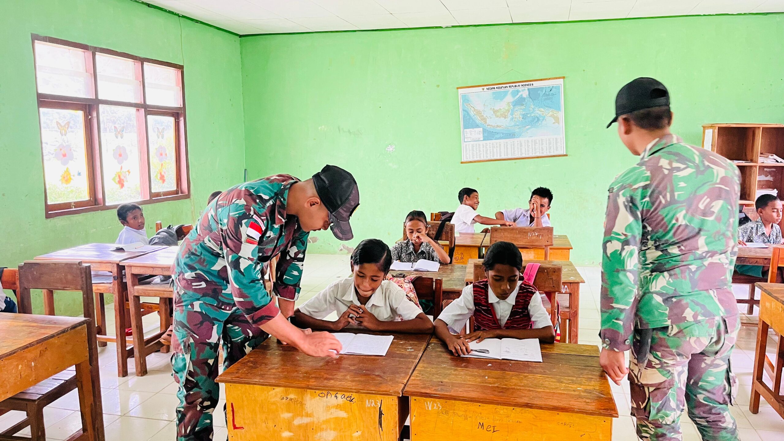 Belu – Dalam upaya mencerdaskan generasi muda di wilayah perbatasan, personel Pos Lookeu Satgas Pamtas RI–RDTL Sektor Timur Yonarmed 12 Kostrad melaksanakan kegiatan pengajaran di SD Inpres Lookeu, Desa Lookeu, Kecamatan Tasifeto Barat, Kabupaten Belu. Kegiatan ini difokuskan pada pemberian materi Ilmu Pengetahuan Alam (IPA) yang bertujuan menumbuhkan pemahaman siswa tentang lingkungan dan fenomena alam di sekitar mereka, Jumat (27/02/2026).