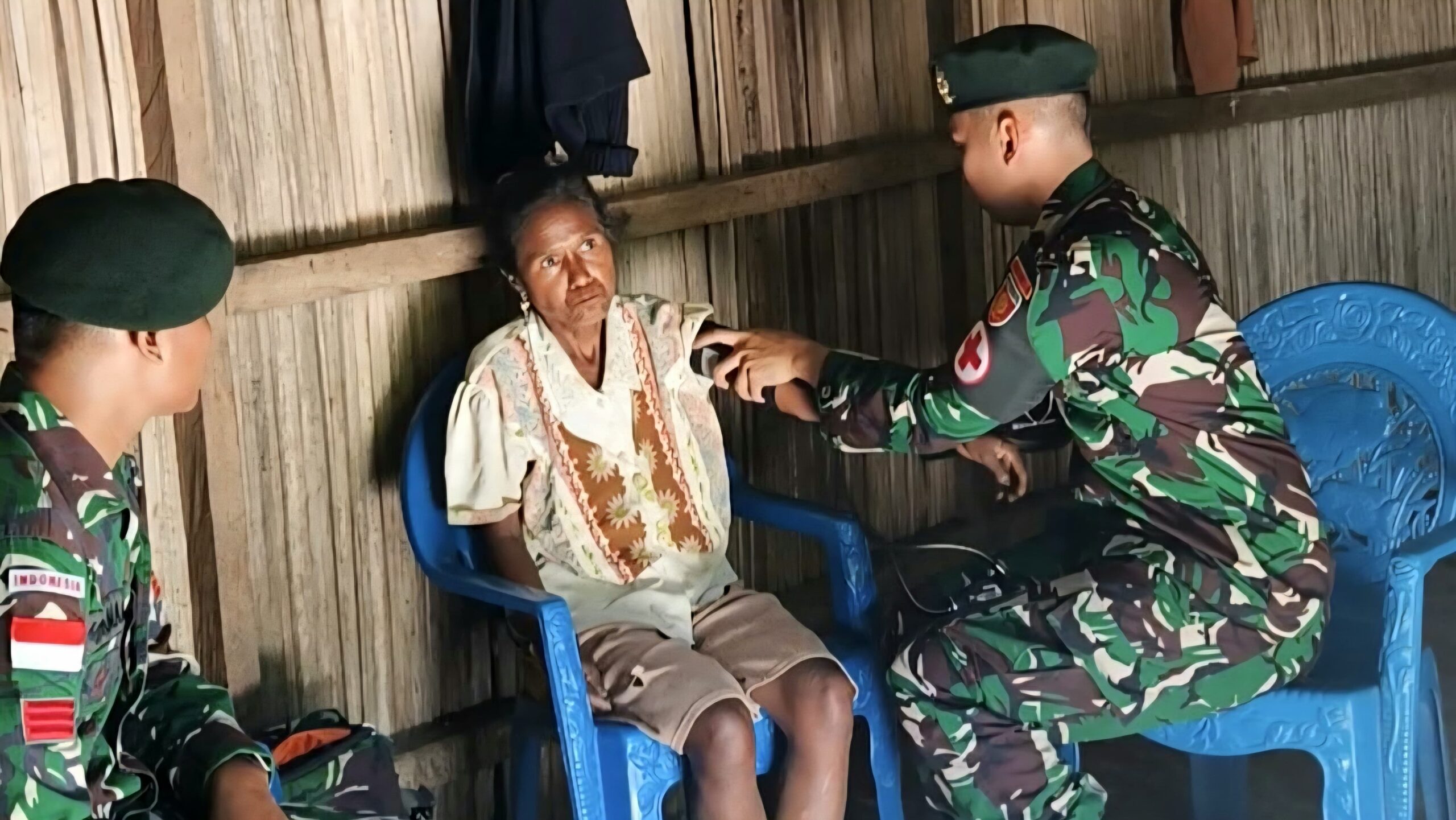 Belu – Kepedulian terhadap kesehatan masyarakat terus ditunjukkan Satgas Pamtas RI–RDTL Sektor Timur Yonarmed 12 Kostrad melalui Pos Fatubesi Atas dengan melaksanakan pelayanan kesehatan bagi para lansia di Desa Takirin, Kecamatan Tasifeto Timur, Kabupaten Belu. Kegiatan ini merupakan bentuk nyata kehadiran TNI dalam membantu meningkatkan kualitas kesehatan masyarakat di wilayah perbatasan, Rabu (08/04/2026).