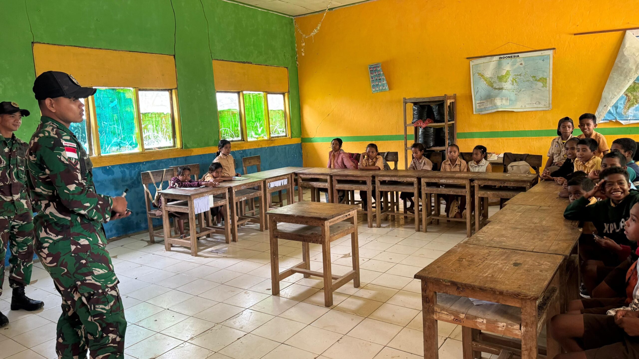 Belu – Kepedulian terhadap dunia pendidikan di wilayah perbatasan kembali ditunjukkan oleh Satgas Pamtas RI–RDTL Sektor Timur Yonarmed 12 Kostrad melalui Pos Nananoe dengan melaksanakan kegiatan pengajaran di SDI Nanaenoe, Desa Nananoe, Kecamatan Nanaet Dua Besi, Kabupaten Belu, Nusa Tenggara Timur. Pada kesempatan tersebut, personel Satgas memberikan materi pelajaran Bahasa Inggris kepada para siswa dengan tema perkenalan diri. Sabtu (08/03/2026).