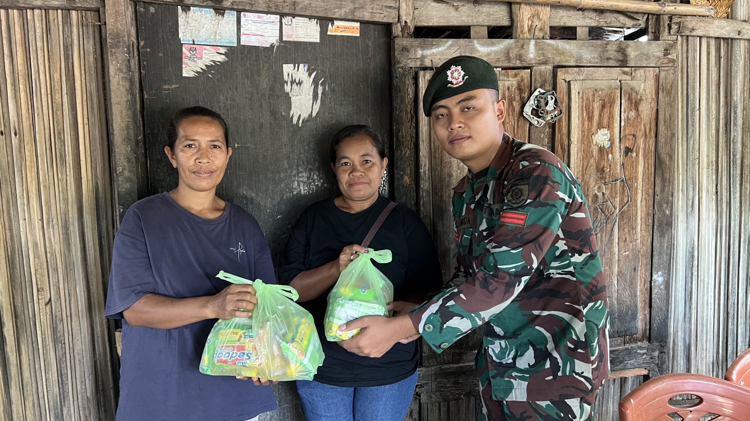Sebanyak 30 kepala keluarga dari komunitas Uni Timor Aswain (UNTAS) menerima paket sembako yang diserahkan langsung oleh personel Satgas. Penyaluran bantuan dilaksanakan di Kelurahan Lidak, RT 006 RW 001, tepatnya di rumah Mama Lusia Talan, Kabupaten Belu, Nusa Tenggara Timur, dalam suasana penuh kebersamaan.