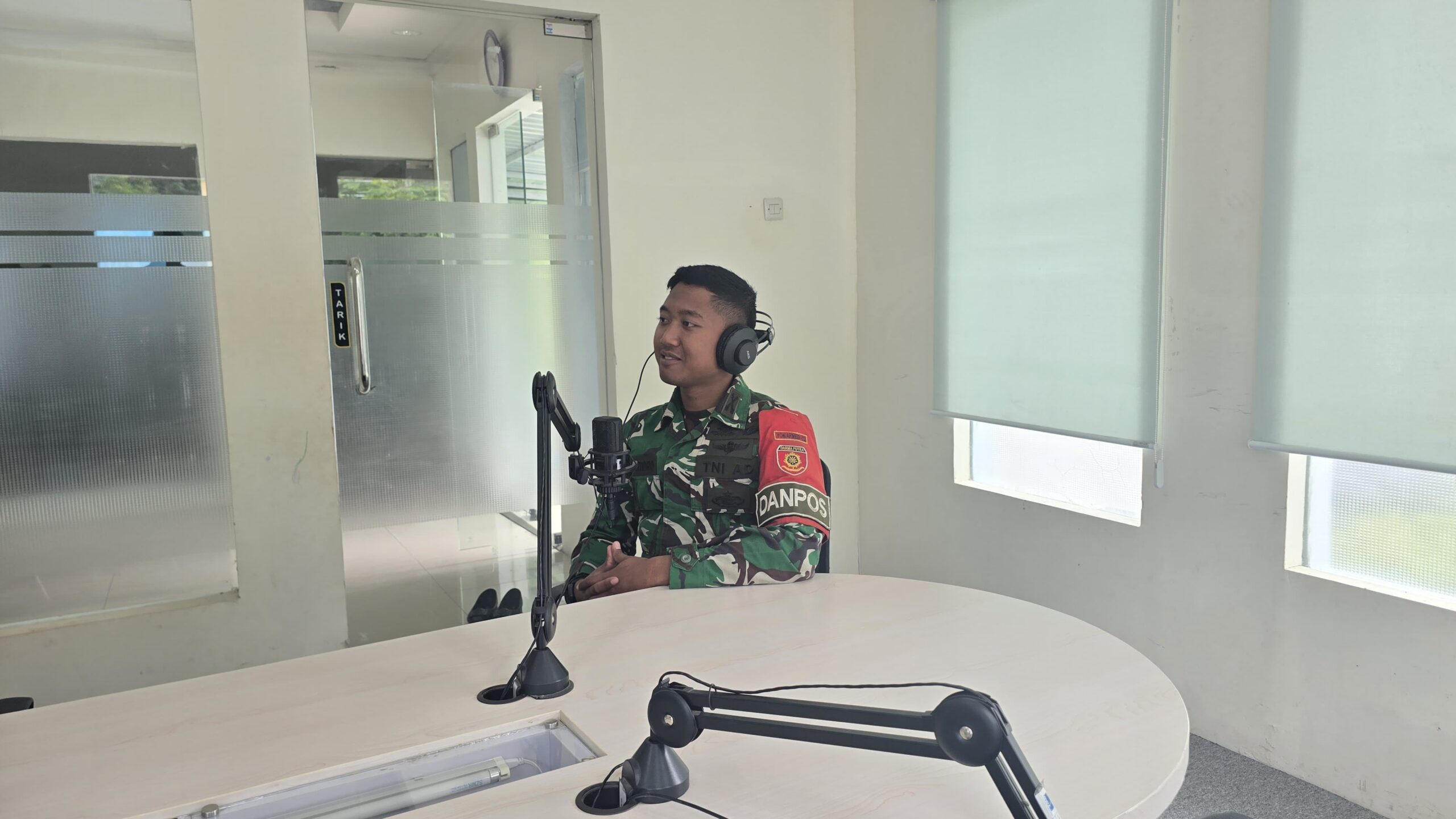 Belu — Satgas Pamtas RI–RDTL Sektor Timur Yonarmed 12 Kostrad melaksanakan kegiatan podcast di RRI Atambua yang bertempat di Umanen, Kecamatan Atambua Barat, Kabupaten Belu, Nusa Tenggara Timur. Kegiatan ini mengangkat topik “Upaya Pencegahan Penyelundupan dan Perlintasan Ilegal di Wilayah Perbatasan”, sebagai bagian dari komitmen Satgas dalam memberikan edukasi dan informasi kepada masyarakat terkait pentingnya menjaga keamanan dan ketertiban di kawasan perbatasan RI–RDTL, Rabu (28/01/2026).