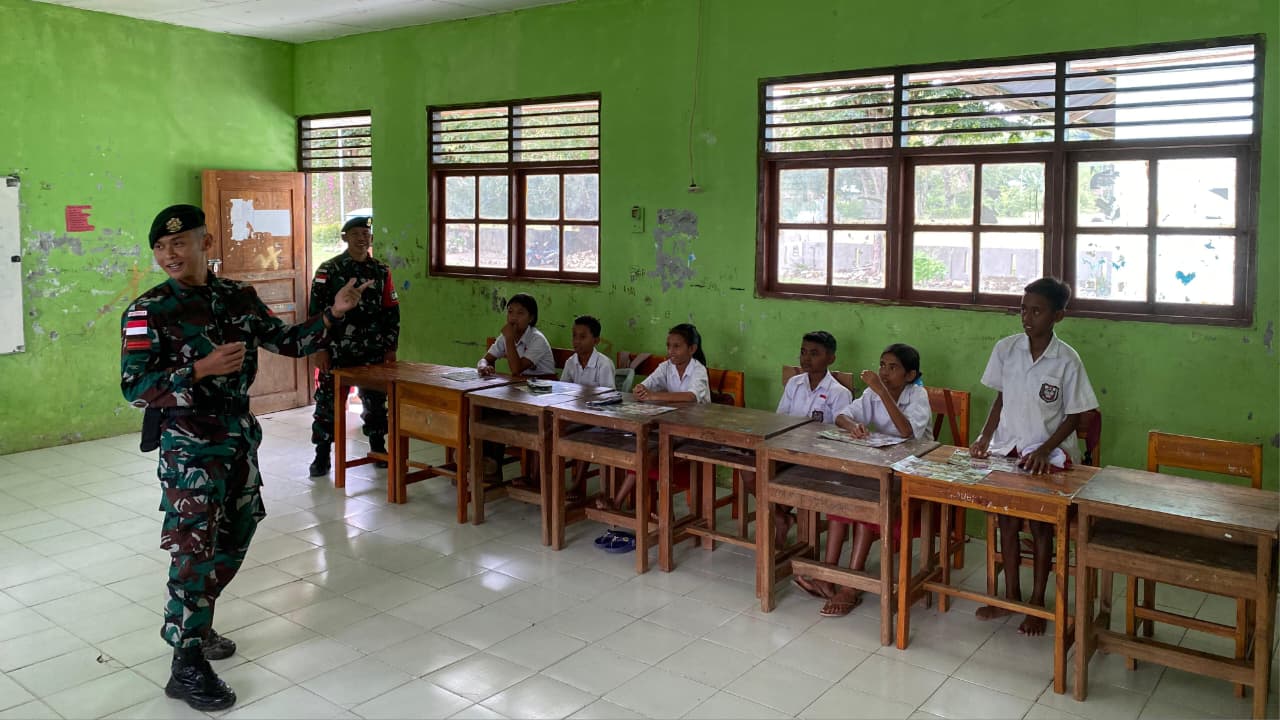 Belu — Satgas Pamtas RI–RDTL Sektor Timur Yonarmed 12 Kostrad melalui Pos Dafala melaksanakan kegiatan Gadik dengan membantu tenaga pengajar di SDK Dafala. Kegiatan ini juga dirangkaikan dengan aksi berbagi buku bacaan kepada para siswa sebagai bentuk dukungan terhadap peningkatan literasi di wilayah perbatasan, Senin (26/01/2026).