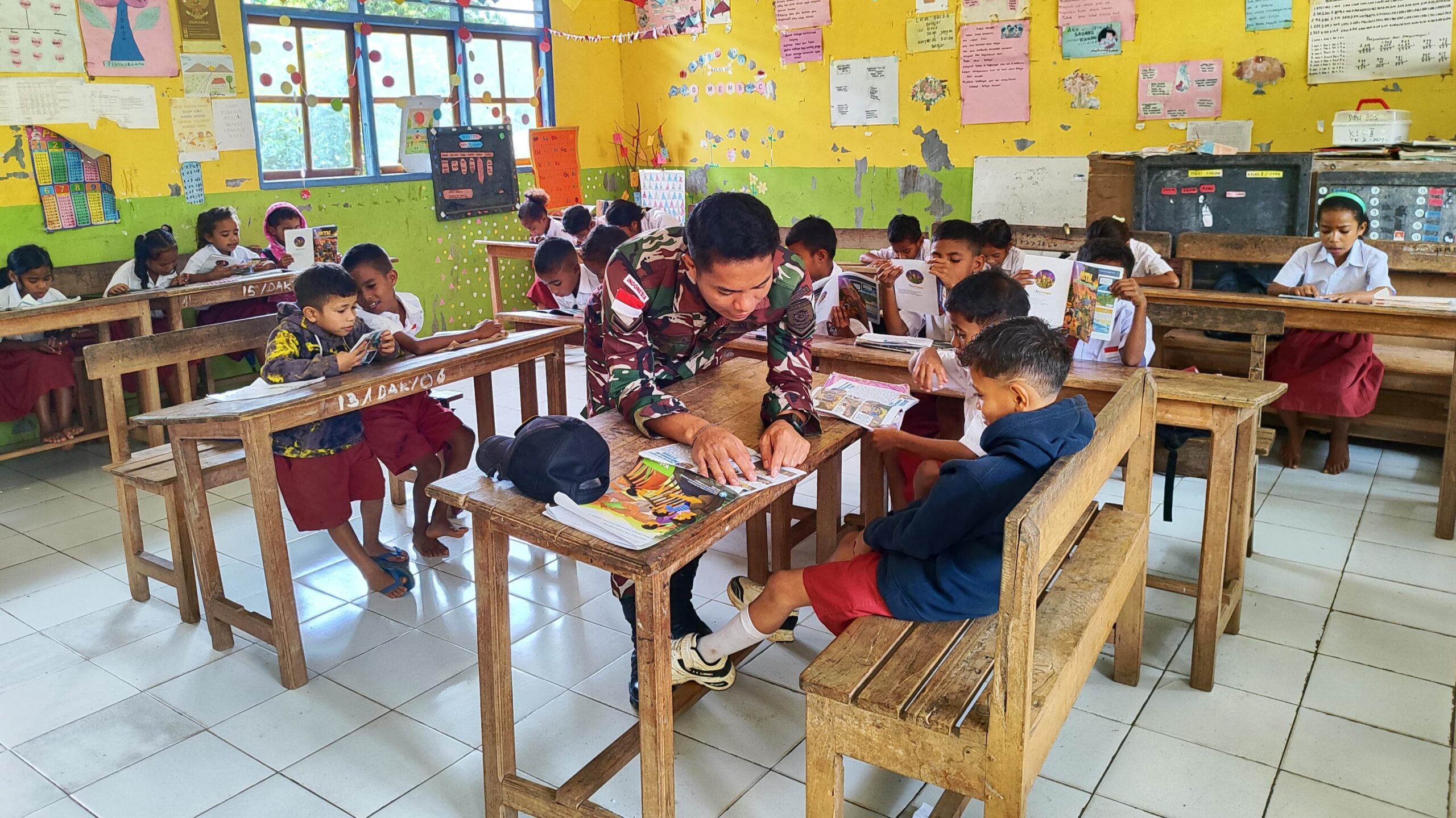 Belu — Satgas Pamtas RI–RDTL Sektor Timur Yonarmed 12 Kostrad melalui Pos Kewar melaksanakan kegiatan edukasi wawasan kebangsaan kepada siswa-siswi SDK Fulur 1, Desa Fulur, Kecamatan Lamaknen, Kabupaten Belu, Nusa Tenggara Timur. Kegiatan ini merupakan bagian dari pembinaan teritorial Satgas Pamtas di wilayah perbatasan, Kamis (29/01/2026).