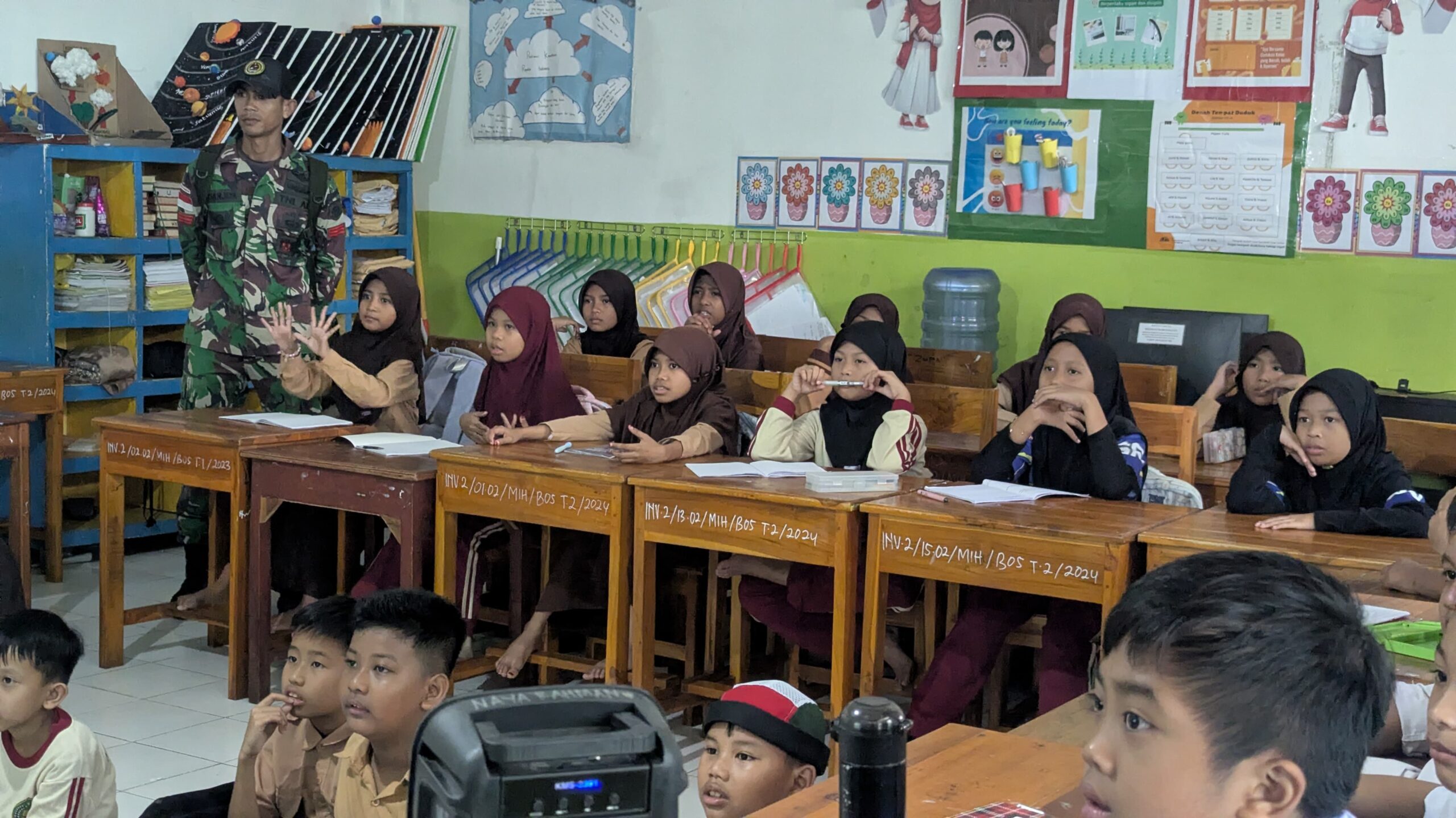 Melalui pendekatan yang interaktif dan menyenangkan, personel Satgas mengajarkan tata cara mencuci tangan yang baik dan benar sesuai standar kesehatan. Para siswa tampak antusias mengikuti setiap tahapan, mulai dari penggunaan sabun hingga langkah-langkah mencuci tangan yang efektif untuk mencegah penyebaran penyakit. Suasana belajar pun berlangsung penuh keceriaan dan semangat.