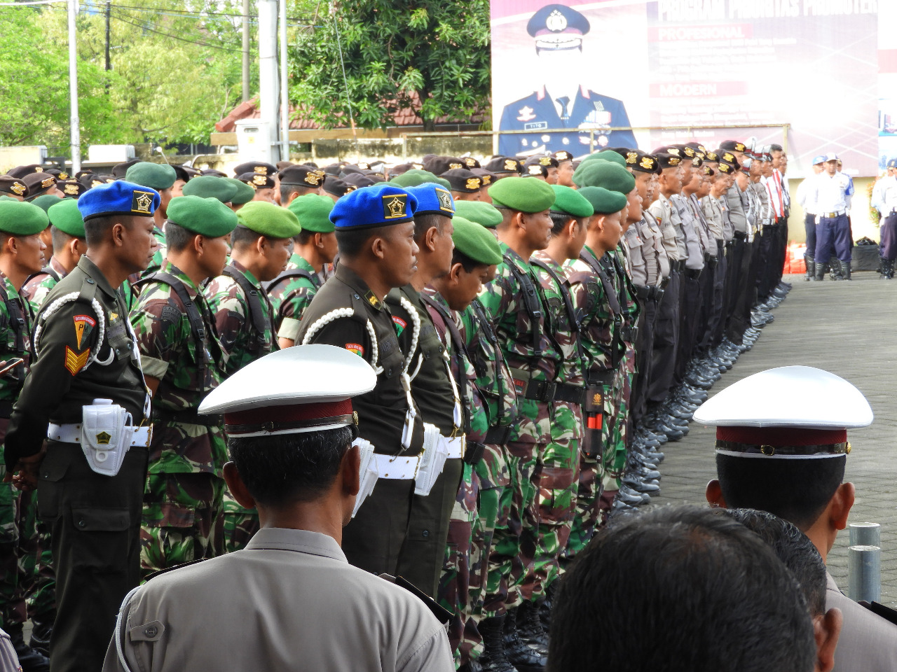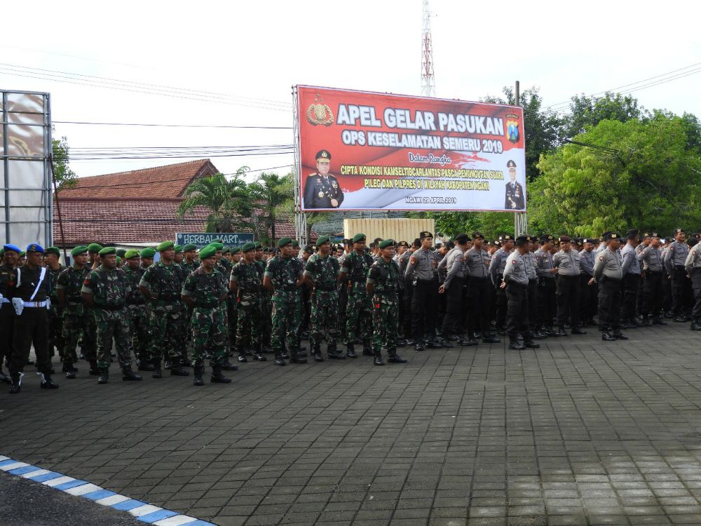Ngawi – Prajurit Batalyon Armed 12 Kostrad mengikuti kegiatan Apel gelar pasukan ops keselamatan semeru tahun. 2019 yang diambil langsung oleh Bupati Ngawi Bapak Ir.H. Budi Sulistiyono di Halaman Mapolres Ngawi dalam rangka keamanan, keselamatan ketertiban, dan kelancaran lalu lintas (Kamseltibcarlantas) pasca Pemilu Pilpres dan Pileg Kab. Ngawi yang dihadiri sekitar 450 orang, Senin (29/4).
