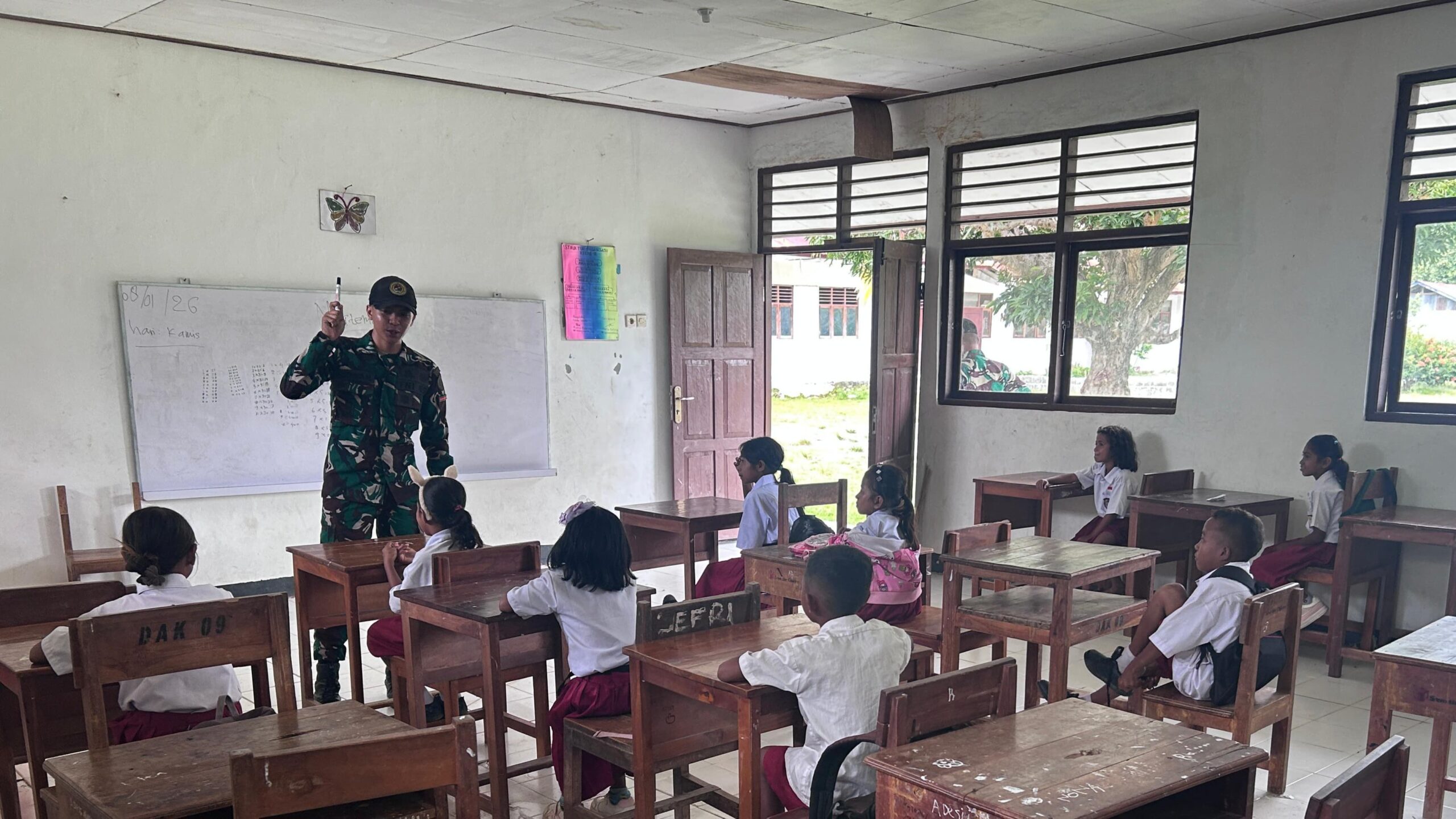 Malaka – Personel Pos Haslot Satgas Pamtas RI–RDTL Sektor Timur dari melaksanakan kegiatan pengenalan dasar komputer kepada siswa-siswi SD Metamauk, Kecamatan Kobalima Timur, Kabupaten Malaka. Kegiatan ini menjadi bagian dari upaya pembinaan pendidikan di wilayah perbatasan, sekaligus memperkenalkan teknologi sejak dini kepada generasi muda, Senin (16/02/2026).
