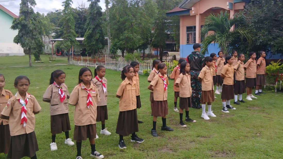 Dalam kegiatan tersebut, personel Pos Nunura memberikan materi Peraturan Baris Berbaris (PBB) kepada para siswa. Melalui latihan sederhana dan penuh semangat, siswa diajak memahami dasar-dasar kedisiplinan, kekompakan, serta rasa tanggung jawab.
