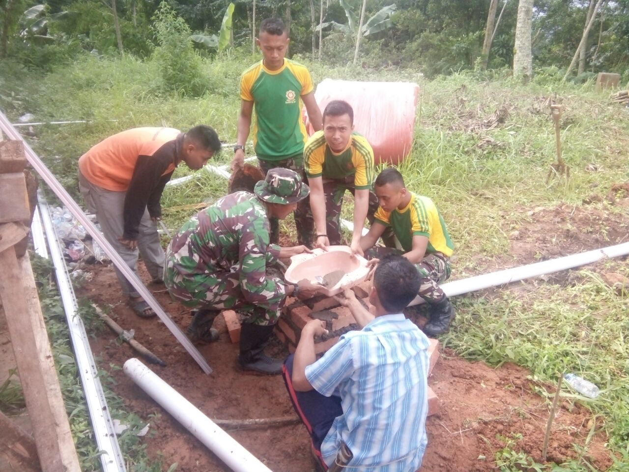 Sebanyak 15 prajurit Yonarmed 13 Kostrad membangun sarana air bersih berupa 2 buah tandon air dan 2 unit MCK yang dibuat dari baja ringan secara sederhana selama 2 hari, dipimpin langsung oleh Lettu Arm Dedi. F. Ginting selaku Pasi 1 Intel Yonarmed 13 Kostrad, Kamis (02/05/2019).