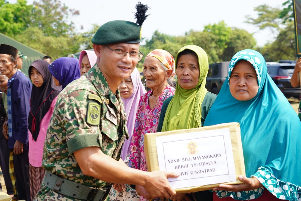 Meski terbiasa dengan disiplin dan ketegasan di medan latihan, para prajurit menunjukkan sisi lain dari jiwa keprajuritan: kepedulian dan kasih sayang kepada sesama. Dengan senyum tulus dan tangan terbuka, mereka menyapa warga, menyerahkan paket sembako, dan berbincang hangat dengan masyarakat setempat.
