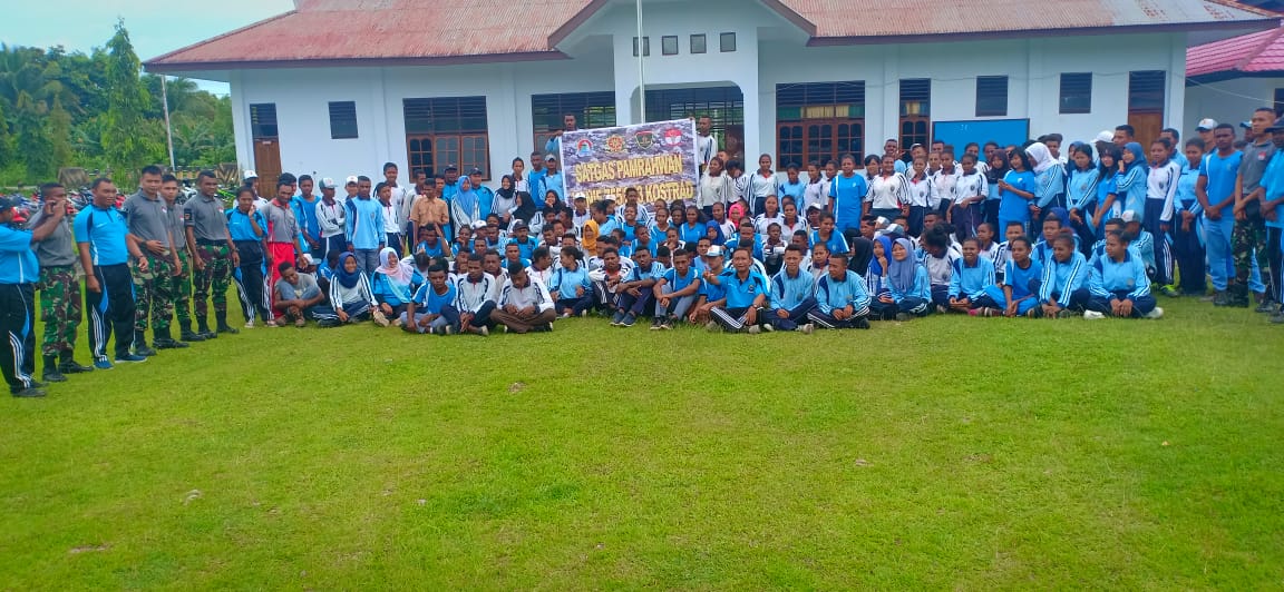 Merauke – Guna menanamkan pentingnya pola hidup sehat sejak dini, Anggota Satgas Yonif 755 Kostrad mengisi kegiatan pagi hari di sekolah dengan senam pagi
