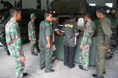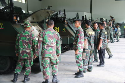 PB|Purworejo – Yonif Mekanis 412 Kostrad menerima kunjungan Direktorat Peralatan Angkatan Darat (Ditpalad) yang dipimpin oleh Serma Yudi Prabowo. Kegiatan tersebut berlangsung di garasi Ranpur M113 Mako Yonif Mekanis 412 Kostrad, Purworejo, Senin (3/7). Kegiatan ini merupakan program kerja Ditpalad untuk membina dan menyelenggarakan fungsi peralatan serta pemeriksaan semua Kendaraan tempur (Ranpur) M113 yang ada di Yonif Mekanis 412 Kostrad. Adapun kegiatan Ditpalad tersebut yaitu melaksanakan Servis mesin, perbaikan kelistrikan, ganti oli dan pembersihan pada dudukan rantai roda serta pemeriksaan seluruh kondisi Ranpur.